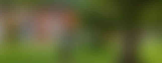 No jardim há varias casas dos duendes, com pequenas portas e janelas, decoradas de forma lúdica.